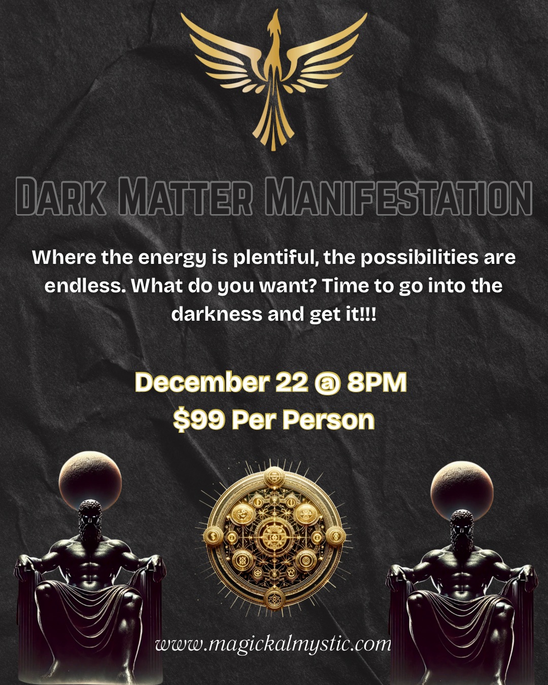 $99.00Make your list. Check it twice. Santa may not be real, but dark matter is and it is how you get what you want. To participate in this ritual, you simply place your list on your sacred space before the start of the ritual so that it absorbs this channeled energy from Emme’s altar. No sacred space? The kitchen window sill, fireplace, or under the mattress works. MAKE SURE YOU WATCH THE RITUAL AT THE MAGICKAL MYSTIC PAGE (SIMPLY CLICK THIS LINK AND FOLLOW NOW!) WHEN- December 22 (Master Builder) at 8PM (portal of circulation) Product Lines Used Magickal Mystic- Dark Matter, Dark Arts, Manifestation, Creator’s Delight, Djinn, Pluton, All Is Fair, Pot of Gold, Black Gold, Divine Surplus, Just Desserts, Fortified, Family Restoration, Law of Love The Alchemist- Primordial Channeling, Primordial Projection, I AM, Flow of Abundance, Vibration of Success, I Am Happiness, Divine Defense, Vibration of Freedom, Infinite Wealth, Financial Fracture Healing