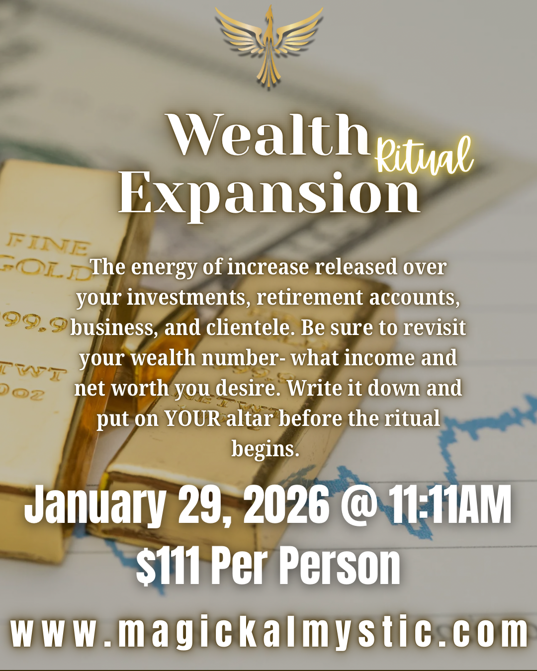 $111.00JANUARY 29, 2026 AT 11:11AM PORTAL, we are sending through and calling back the frequency of wealth, of expansion in all the places that matter from investments to business, including your clientele. Ritual work will be available to watch at Magickal Mystic (click the link) Grab your citrine, green aventurine, tiger’s eye, pyrite, cinnabar, lodestone and clear quartz, or any of them you have. Deities- Aje, Oya, Mammon, Ogun, Laima, Fortuna, Amaterasu, Inanna, Vishnu, Ganesha, Lakshmi, Rah Product Lines- Accumulation, Generational Wealth, Full Harvest, Black Gold, Divine Surplus, Easy Street, Creator’s Delight, Manifestation, Abundance, Expansive, Frequency Intention- I call for favor over everything I have built and all that I touch, increase from on high, expansion as far as the horizon, growth of my wealth with grace that keeps my peace and joy intact. Ase’