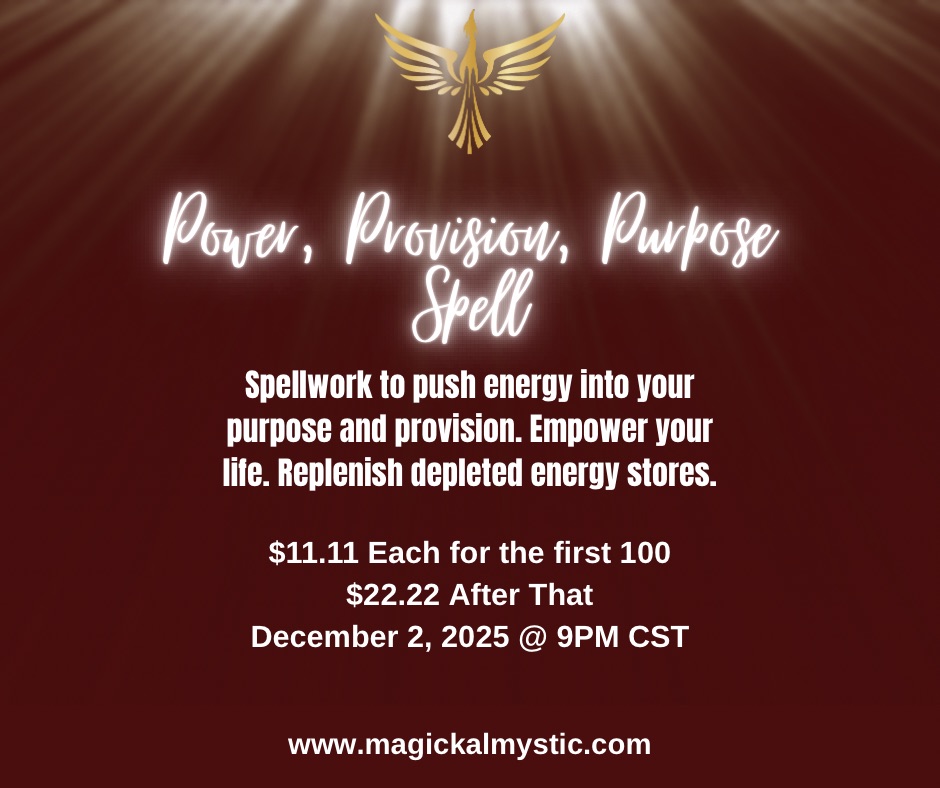 Sale! Original price was: $111.00.$22.22Current price is: $22.22.Emme Rain brings back one of her most powerful spells for ending a year and beginning a new one, pushing power into your purpose, calling in provisions and infusing energy to refill depleted energy stores. If you are gifting someone, please include the legal name in the NOTES section. Ritual will be viewable at The Magickal Mystic page. Follow now for notifications.