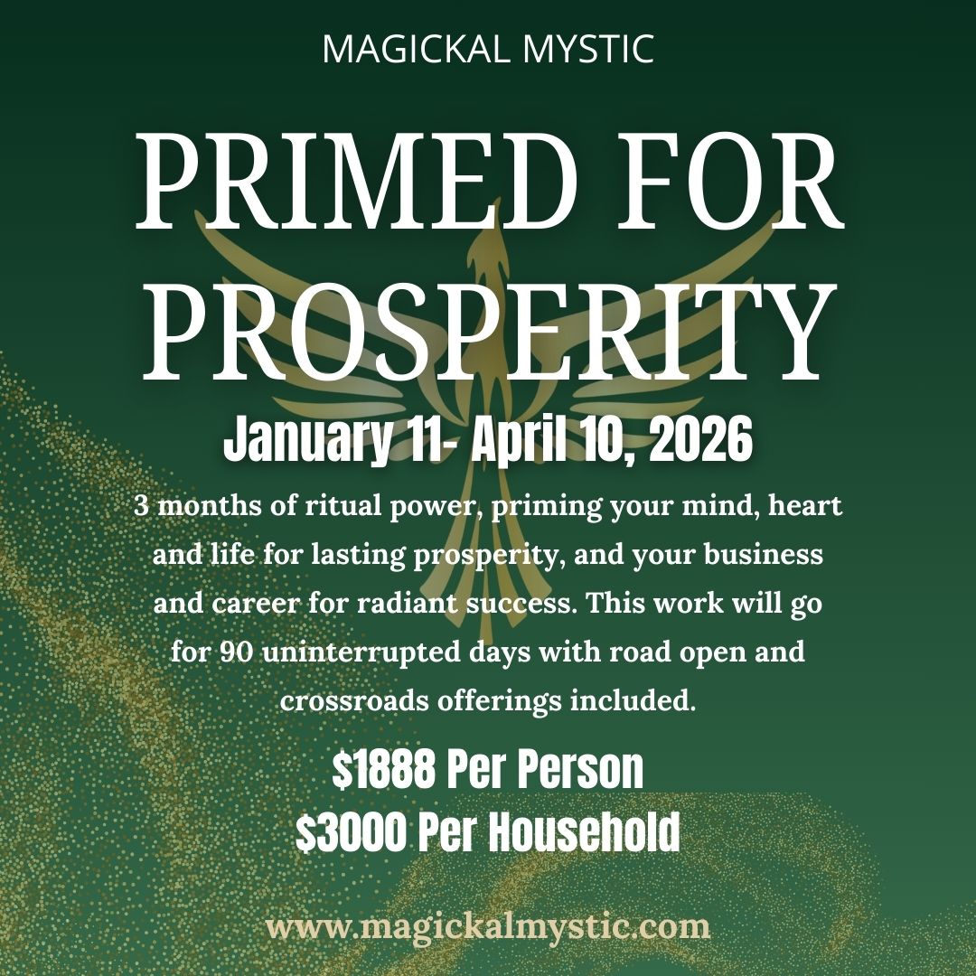 Sale! Price range: $1,888.00 through $2,200.003 months of continuous ritual working specifically for prosperity, abundance, money increase. This altar will be used only for those who join for the entirety of the 3 months. Road opening work and crossroad offerings are included for all participants. Money protection work as well as recall work is also included. $3000 covers your entire household but will not cover someone living else where. For those buying by the household, please provide the address you want covered. TIP: For those doing household, it will also include your children, no matter the age, if they live in the home. It’s a great way to shore up additional wealth energy for your child to grow in. So make sure you take advantage of that. One option is channeling the energy into a trust fund or account you already have set up for your children.
